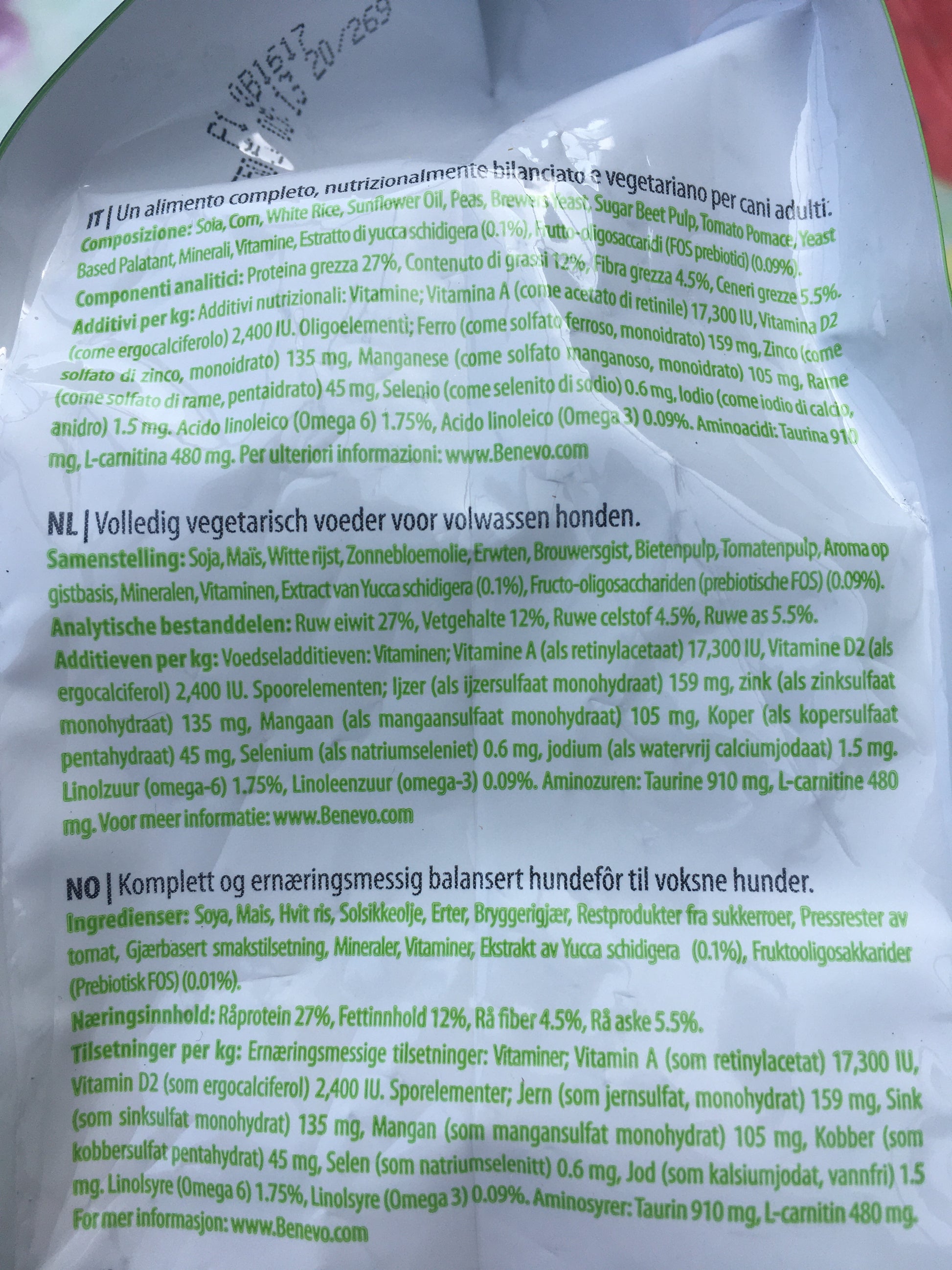 De hondenbrokken zijn rijk aan veganistische ingrediënten aangevuld met gist. Bij Benevo ben je zeker van een uitgebalanceerde voeding op basis van plantaardige ingrediënten, vol vitaminen en mineralen.